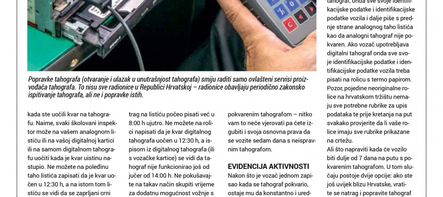 Što učiniti u slučaju kvara tahografa?